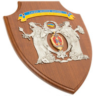 Подарунок “Герб Донецька” – унікальний колаж з гербом міста, який є символом гідності та відданості мешканців Донецька. В центрі композиції – позолочена підкова, виготовлена з високоякісного сплаву міді та оздоблена камінням Swarovski, яка обрамляє історичний герб з молотом і шахтарською киркою, підкреслюючи промислове минуле та майбутнє регіону. Герб вирізняється на тлі дамаського орнаменту, що додає роботі витонченості.